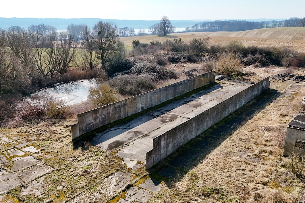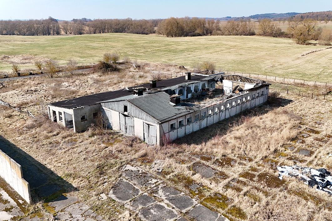 Ehemalige Stallanlage, die größtenteils zurückgebaut wurde. Die Konversionsfläche ist noch bebaut mit einer großen Halle in Fertigteilbauweise, einer Werkstatt mit Büro, einem offenem Silo und einer großen Stallruine. Die Freiflächen sind teilweise mit Betonplatten befestigt, die weiteren Flächen sind ungenutztes Grünland.