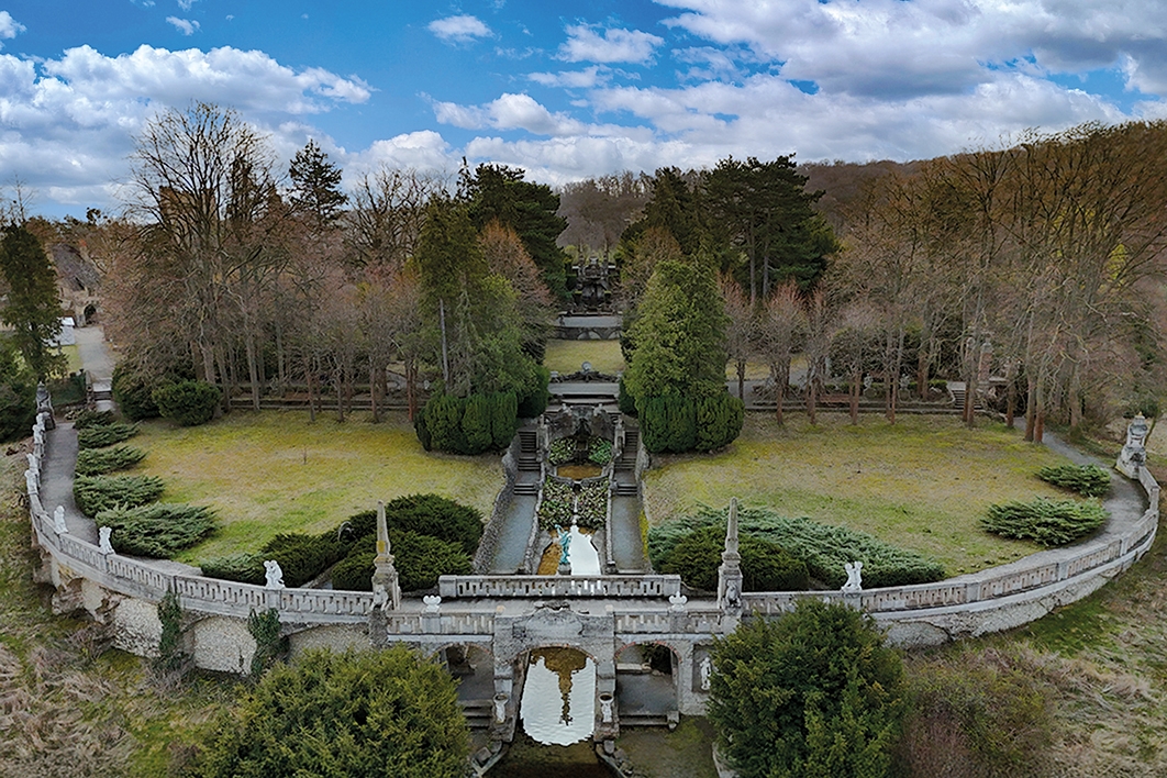 Das Gesamtareal umfasst neben der Burganlage und dem sich anschließenden Schloßpark (ca. 3,4 Hektar) zusätzliche ca. 8,3 ha angrenzende Landwirtschafts- und Waldflächen. Im Schloßpark sind u.a. eine groß angelegte Wasserachse mit mehreren Wasserspielen, ein Laubengang sowie ein Mausoleum vorhanden.