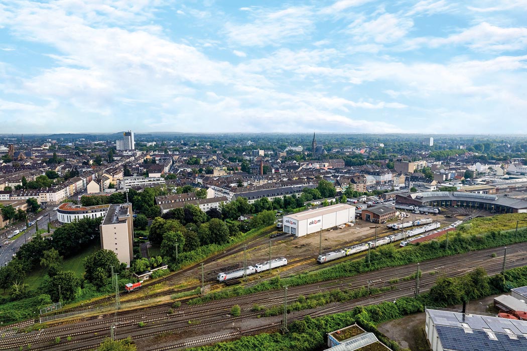 Das Grundstück befindet sich in Innenstadtlage, die direkte Umgebung ist durch mehrgeschossige Wohnbebauung und Bahnanlagen geprägt.