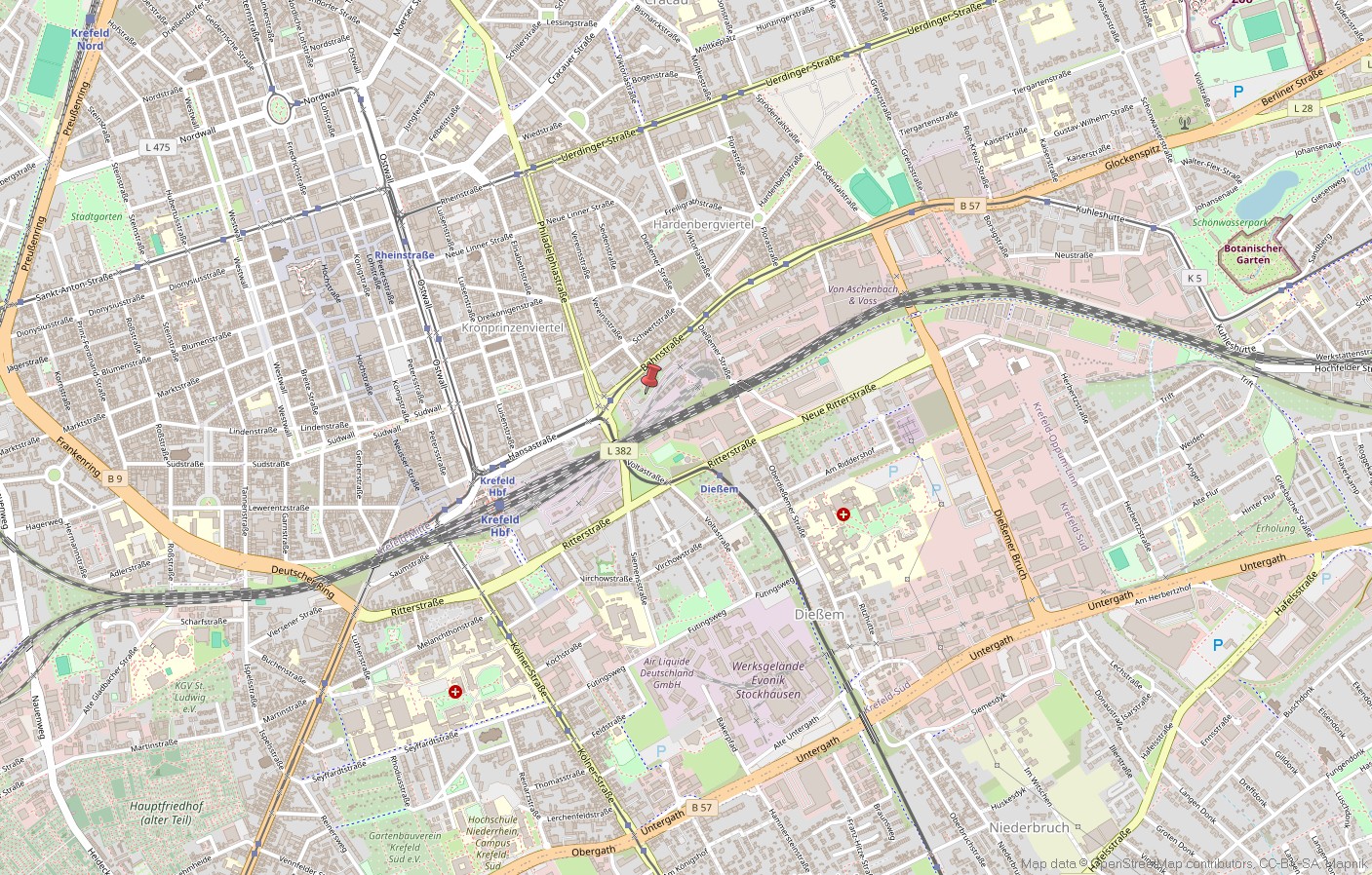 Durch die guten Verkehrsanbindungen an die die A 44 und A 57 sowie weiterer vier Bundesstraßen sind die Städte Düsseldorf, Duisburg Mönchengladbach jeweils in ca. 20 km zu erreichen. Vom dem ca. 750 m entfernt liegenden Hauptbahnhof bestehen außerdem gute Verbindungen in andere Städte und Regionen.