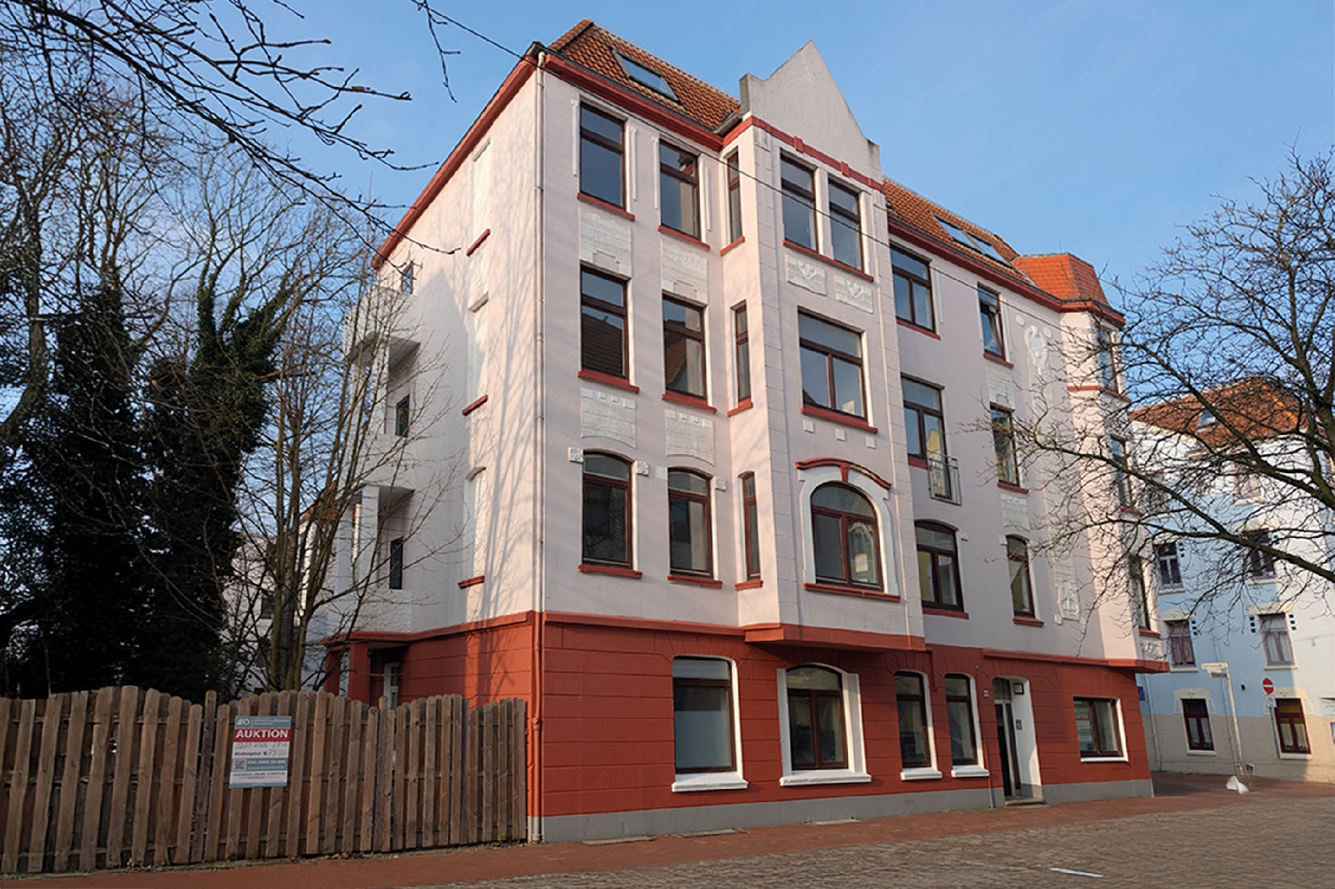 Hinweise: 1. Der Einbau einer Aufzugsanlage (barrierefrei) innerhalb des Treppenhauses ist ohne größeren baulichen Aufwand möglich (Kostenvoranschlag liegt vor). 2. Die gesamte Immobilie ist noch bis zum 28.02.2027 an eine Tochtergesellschaft der Stadt Bremerhaven für eine Jahresnettomiete von EUR 61.200,00 vermietet.