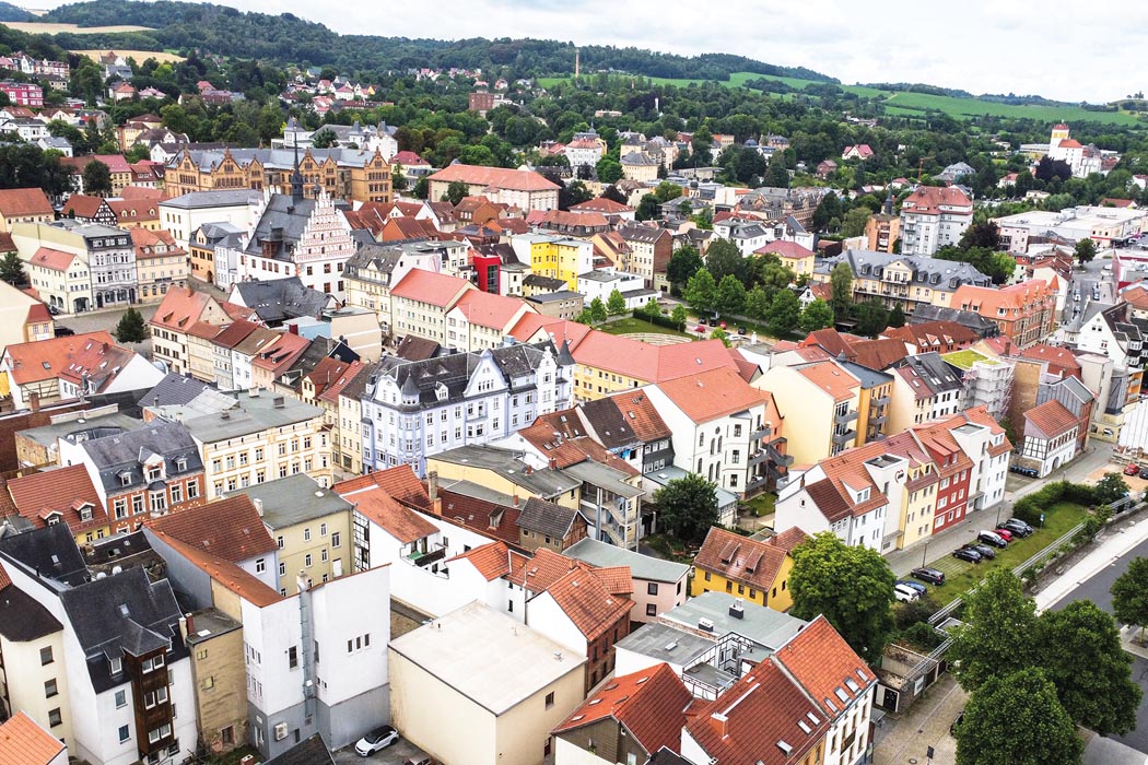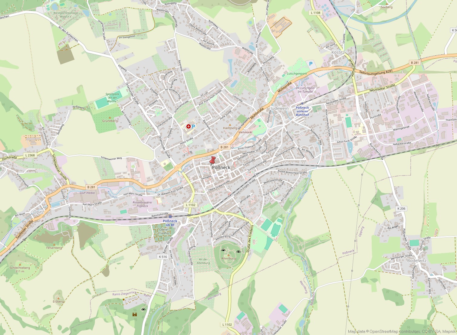 • Pößneck mit ca. 12.000 Einwohnern ist eine Stadt im Saale-Orla-Kreis. Besonders sehenswert ist die historische Altstadt und der im Rahmen der Landesgartenschau 2000 entstandene Stadtpark. Gute Verkehrsanbindung über die B 88 nach Jena (ca. 35 km). Über die ca. 15 km entfernte A 9 (München-Berlin) ist Pößneck auch überregional sehr gut angebunden.