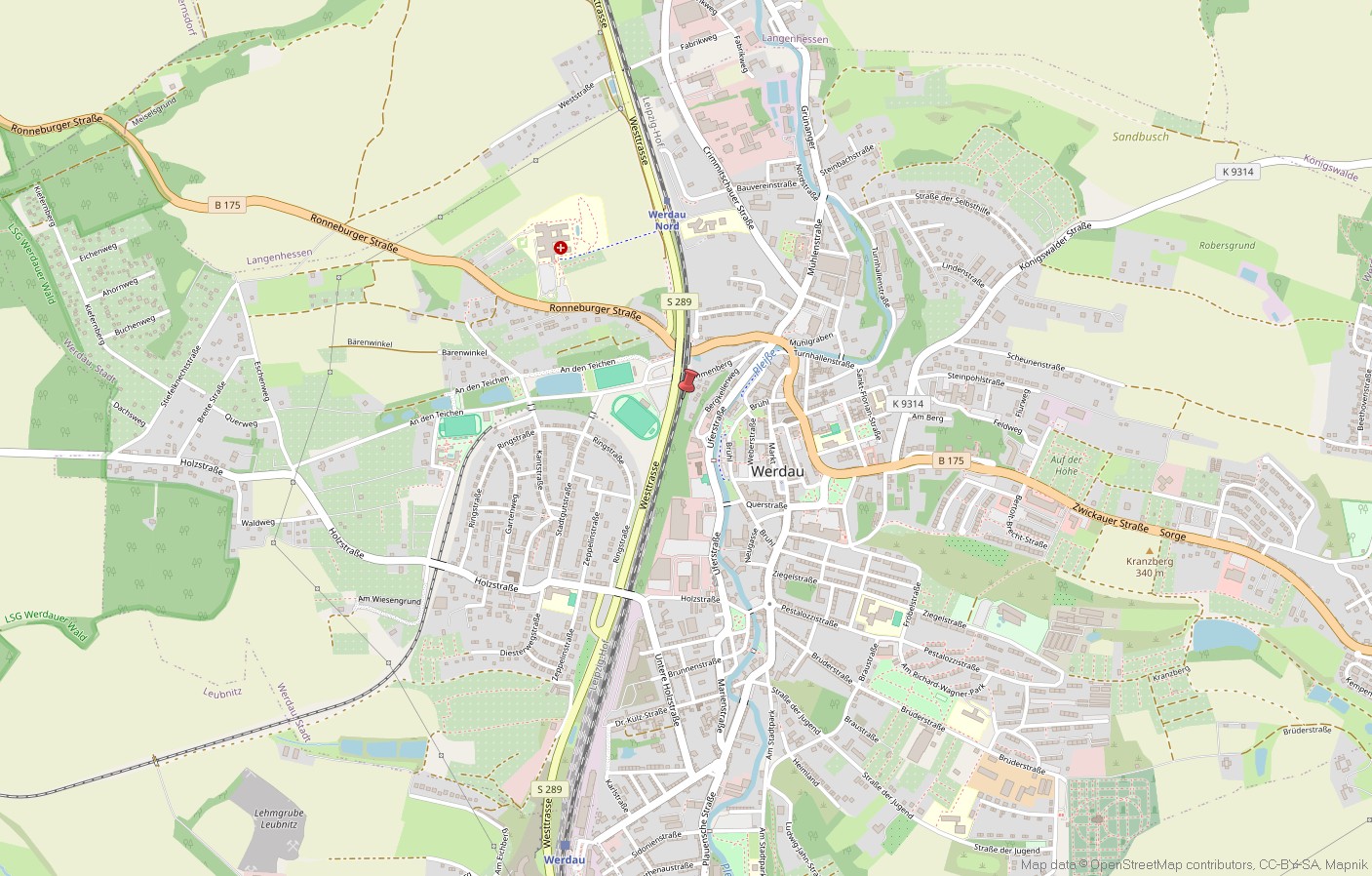Der Ort liegt verkehrstechnisch günstig, die Autobahnauffahrten der A4 und der A72, befinden sich jeweils in ca. 15 km Entfernung. Der Bahnhof liegt ca. 2 km südlich vom Grundstück und ist durch die ca. 500 m entfernte Bushaltestelle Werdau zum Sternplatz, in ca. 5 Minuten zu erreichen, was eine sehr gute Anbindung an den öffentlichen Nahverkehr bietet.