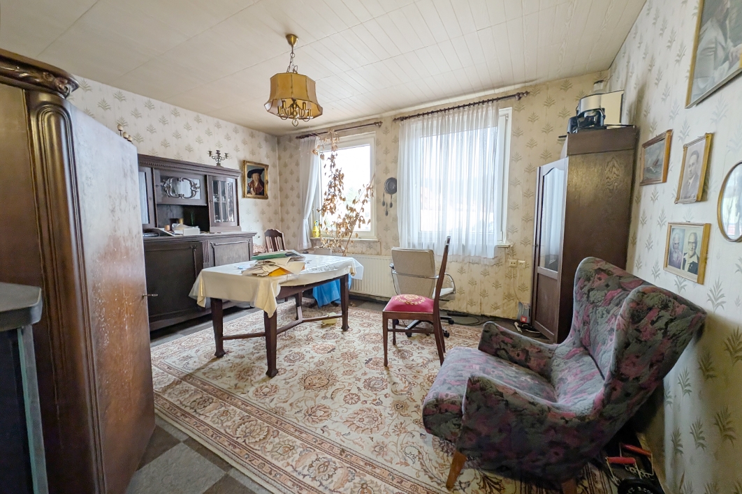 • Altbau, Bj. ca. 1935, Wohn- und Gewerbeobjekt bestehend aus Mehrfamilienhaus mit Gewerbeanbau (ehem. Färberei/Reinigung) sowie zwei Nebengebäuden, Wohnhaus 2-geschossig mit ausgebautem Dachgeschoss und weiteren Spitzboden, teilweise unterkellert, Satteldach mit Ziegeleindeckung, Kunststofffenster. Anbau 2-geschossig, Walm-, Sattel- und Pultdach (teils Wellplatten), teils Metallrahmen- und Kunststofffenster. Nebengebäude Shed- und Satteldach. Heizanlagen außer Betrieb, Beheizung ehemals über Holz-Einzelöfen, Zähler ausgebaut, insgesamt stark sanierungs- und renovierungsbedürftig.